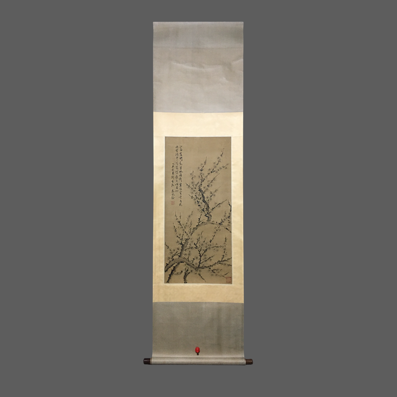 【鳳翰鐵骨|左筆梅花複刻珍品】此中堂得南阜「左筆奇崛」之妙韻,處處融金農古拙與徐渭狂放之精魄。 特選古宣經九礬八染秘法處理,墨色蒼潤若鐵幹凝霜,筆勢逆轉暗合《寒香圖》「斷筆皴」之玄機。 臨摹達「膠西研習級」標準,較尋常梅畫更見揚州畫派左筆絕藝,非止形似追求,實乃重現清代文人逆境風骨之鑒藏珍品,當世稀有的鳳翰範本。材質:宣紙裝裱尺寸:206×63 cm畫芯尺寸:72×40 cm
