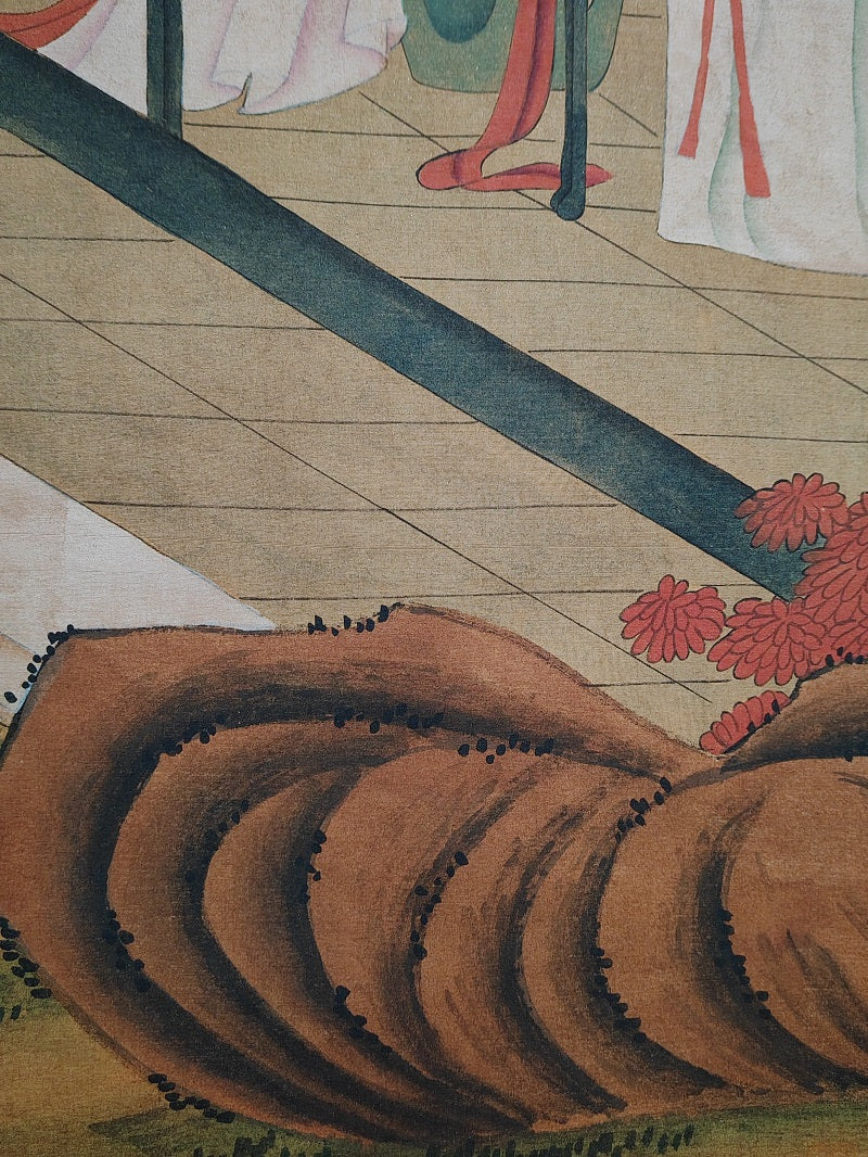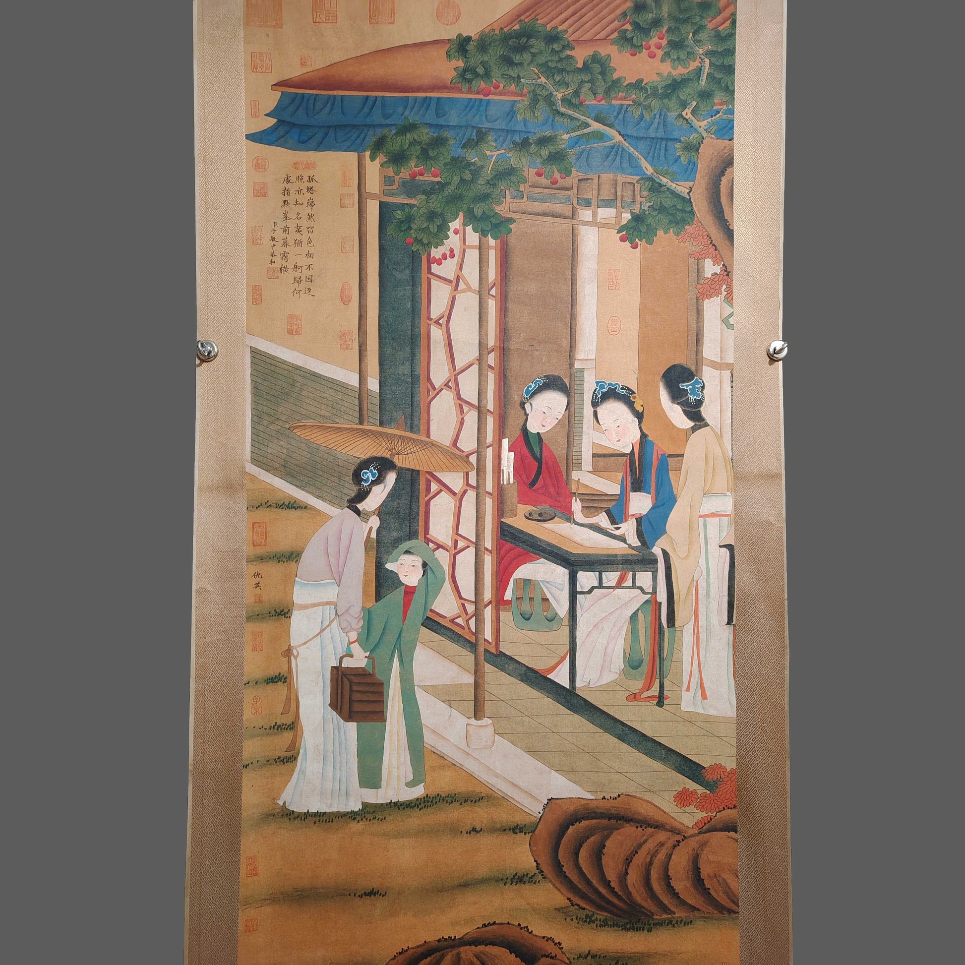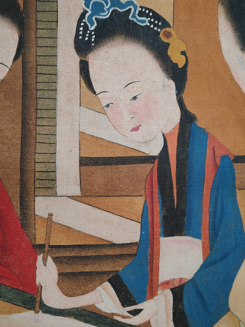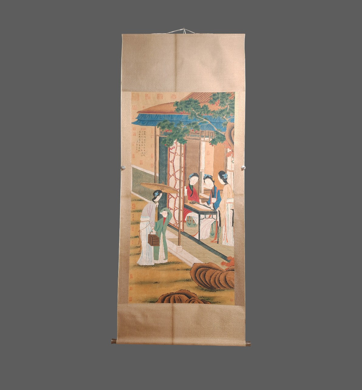 【敏中雅韻|清宮院體複刻珍品】此中堂得於公「館閣氣象」之妙韻,處處融郎世寧寫實與董邦達文雅之精粹。 特選內府細絹經十二礬十一染秘法處理,色墨端麗若珐琅凝輝,衣紋勾勒暗合《乾隆禦賞圖》「鐵線遊絲」之玄機。 臨摹達「金壇研習級」標準,較尋常人物更見乾隆朝詞臣畫家極致,非止形似追求,實乃重現康乾盛世宮廷美學之鑒藏珍品,當世稀有的敏中範本。材質:絹本裝裱尺寸:242×99 cm畫芯尺寸:168×83 cm