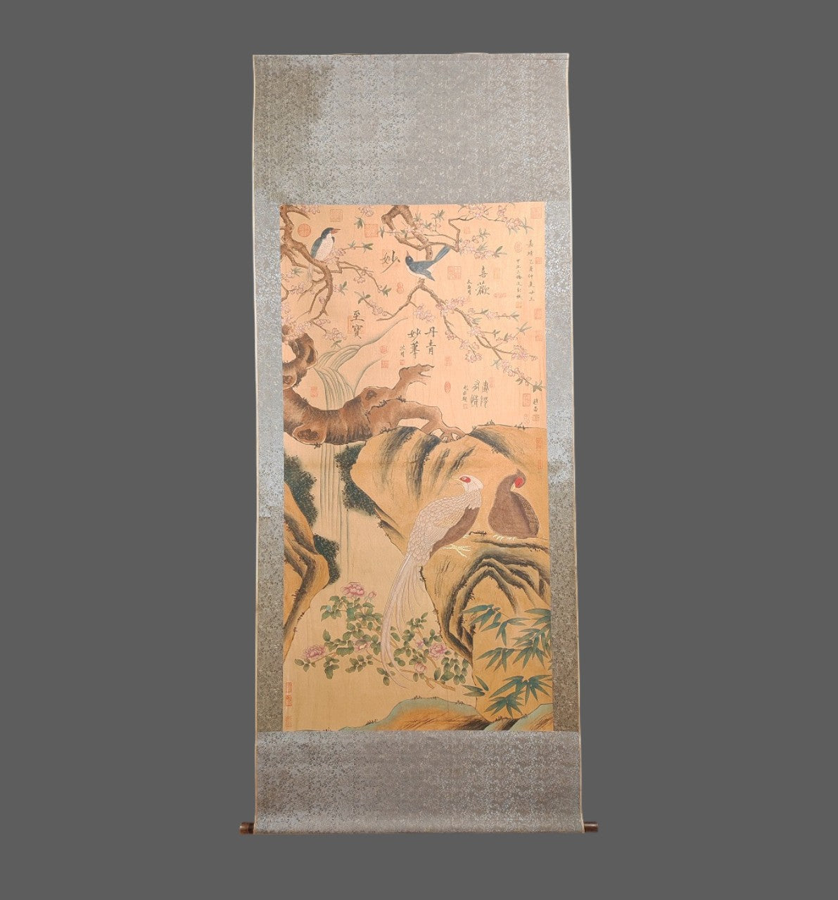 【昌之寫生|北宋院體複刻珍品】此中堂得昌之「寫生神髓」之妙韻,處處融自然生趣與宮廷富麗之精微。 特選北宋宮絹經十五礬十四染秘法處理,色墨鮮活若朝露未晞,花果勾勒暗合《歲朝圖》「沒骨點染」之玄機。 臨摹達「廣漢研習級」標準,較尋常花鳥更見早期院體寫生極致,非止形似追求,實乃重現中國花鳥畫寫生傳統源流之鑒藏珍品,當世稀有的趙昌範本。材質:絹本裝裱尺寸:242×99 cm畫芯尺寸:168×83 cm